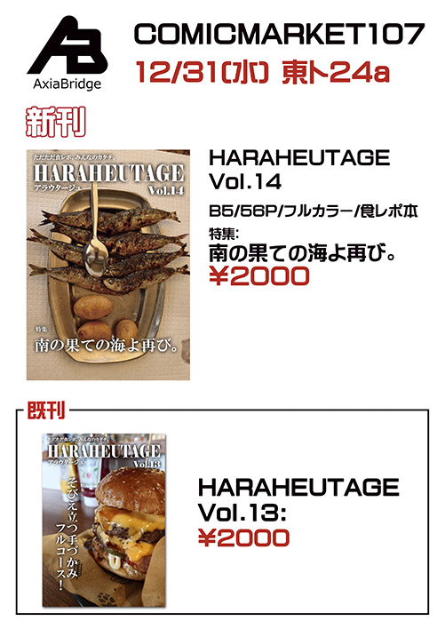 今回も1スペースしか取れなかったので、HARAHEUTAGEのみの持ち込みになります。